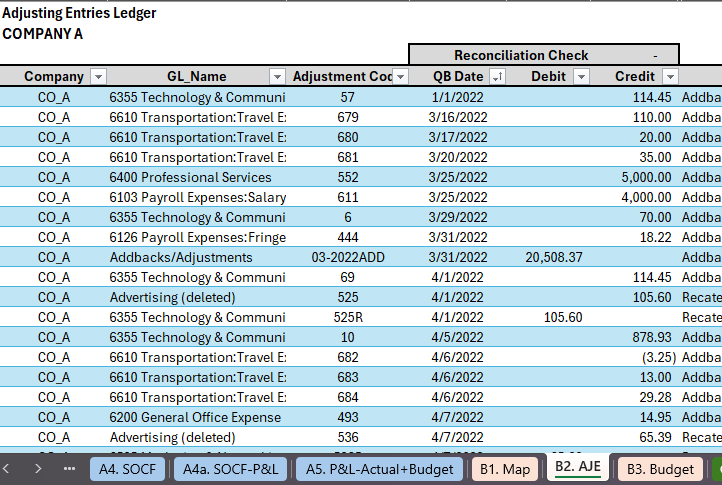 Maintain a dedicated Adjusting Journal Entry (AJE) ledger to keep all top-side activity organized and transparent—without touching the core books.